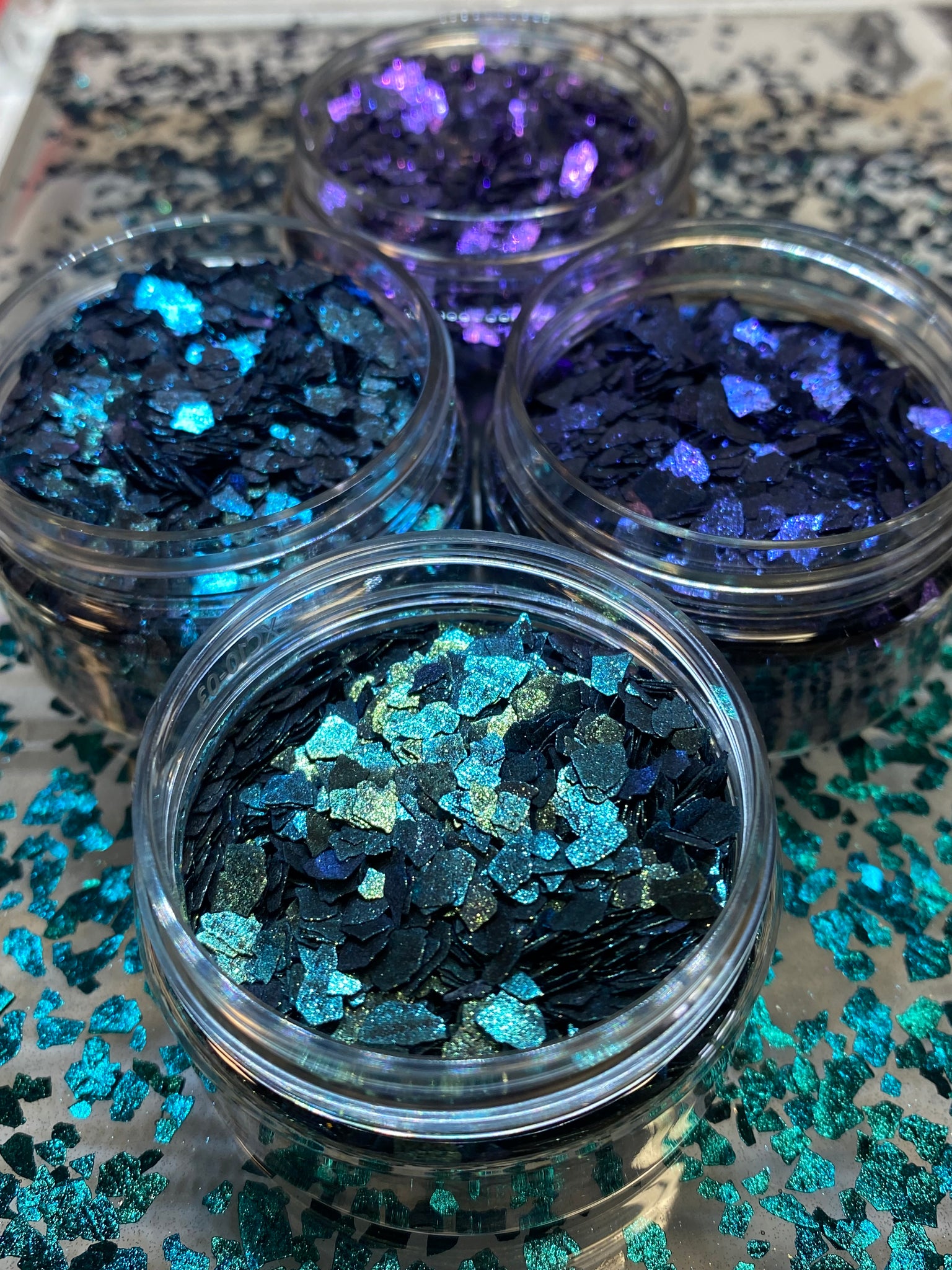 Elevate your resin art, epoxy projects, and jewelry with our curated Chromatic Flakes Bundle – Set of 4. This collection brings together four stunning color-shifting flakes.